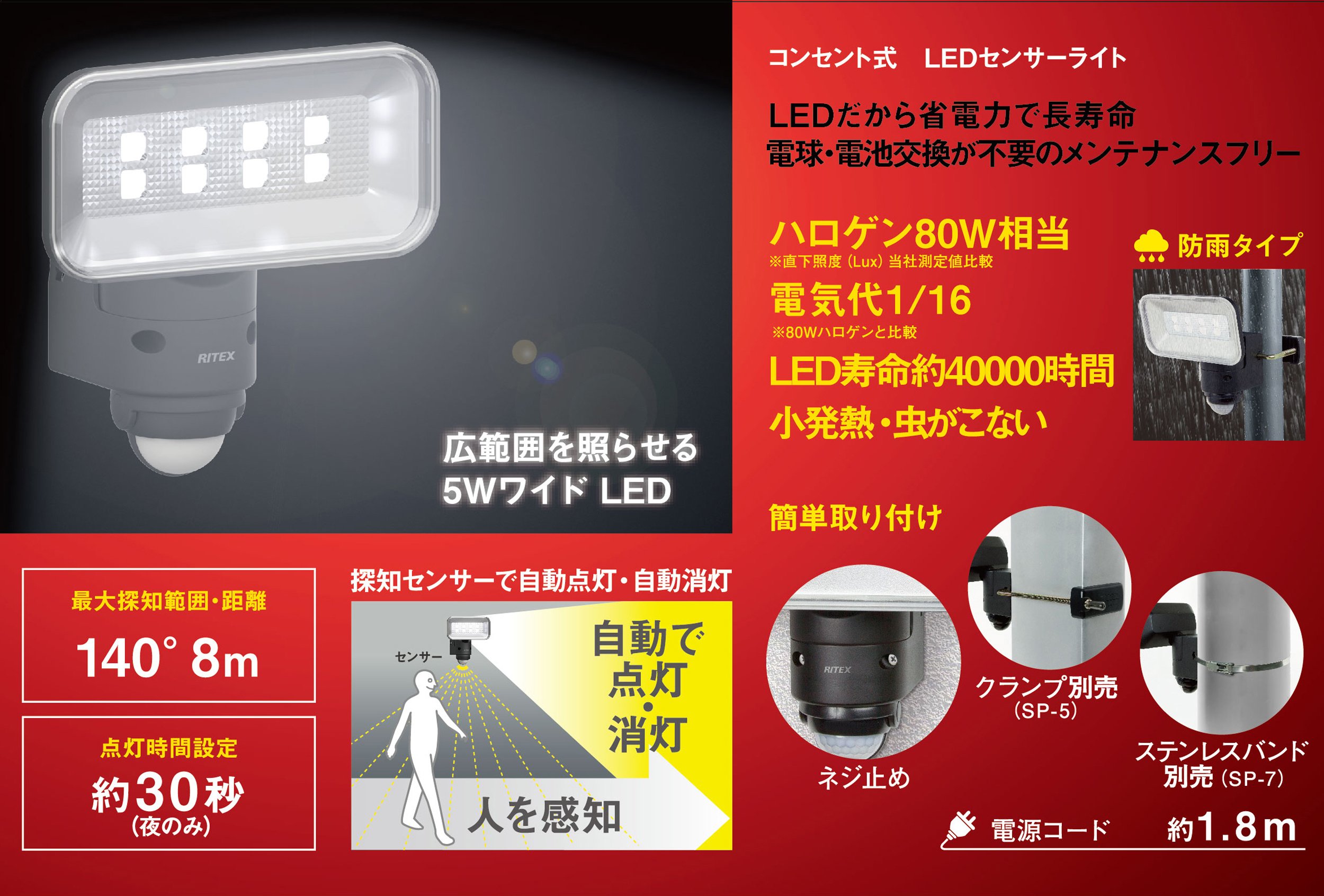 ● Automatic lighting and automatic turning off with detection sensor.
