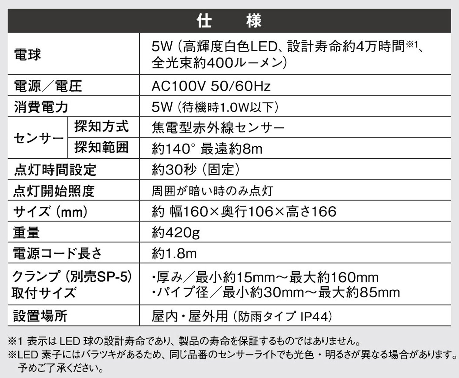 Brightness is about 400 lumen (equivalent to halogen 80 W) * Direct illuminance (Lux) manufacturer comparison value comparison