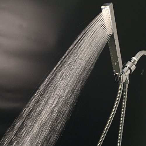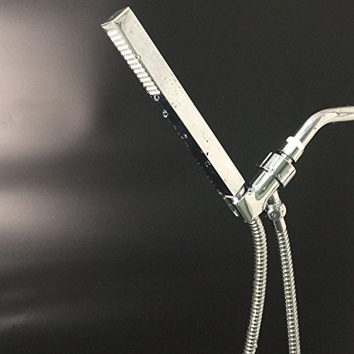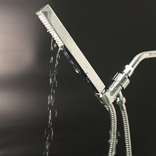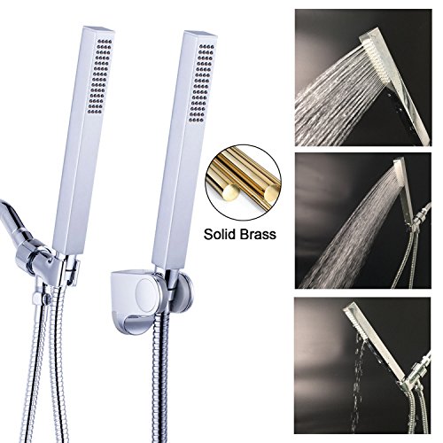 Hibbent Square Solid Brass HandHeld Shower Head - Single Function 1 Spray Hand Shower with Powerful High Pressure - Hand Sprayer with Shower Hose and Wall Mounted Shower Holder - Polished Chrome
