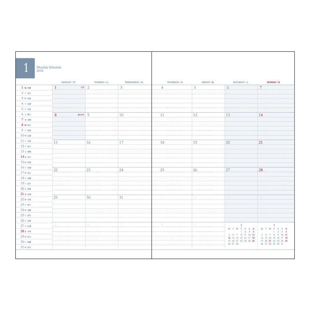 Product name: Daigo notebook project diary Beginning January 2018 Monthly navy blue E1685