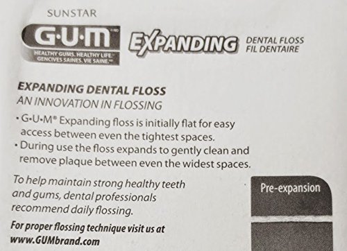 GUM Expanding dental floss (43.3 Yd), removes plaque from hard-to-reach areas between teeth which have larger gaps, while also cleaning effectively in more regular spaces between the teeth.