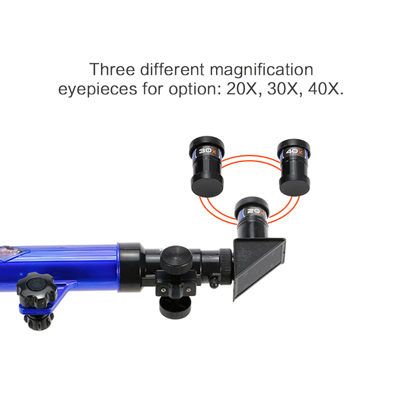 Three different magnification eyepieces included: 20X, 30X, 40X