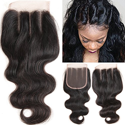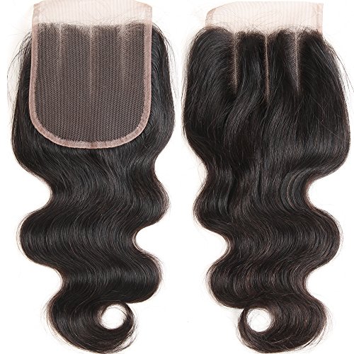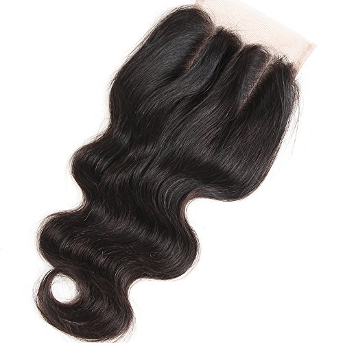 VRHOT 14 inch 3 Part Lace Closure Body Wave 4x4 Brazilian Virgin Human Hair 100% Unprocessed Three Part Lace Closure Natural Color 14 inch (3 Part Lace...