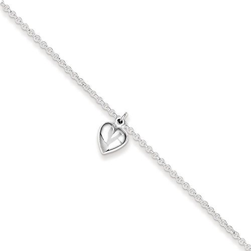 -. Title : Sterling Silver Polished Heart With 1inch Ext. Anklet - 9 Inch