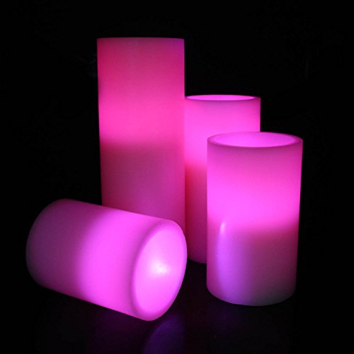 Cozeyat Color Changing Pillar Candles Ivory Flameless Led Real Wax Lights with Remote Control Set of 4 Romantic Candles for Home Decoration