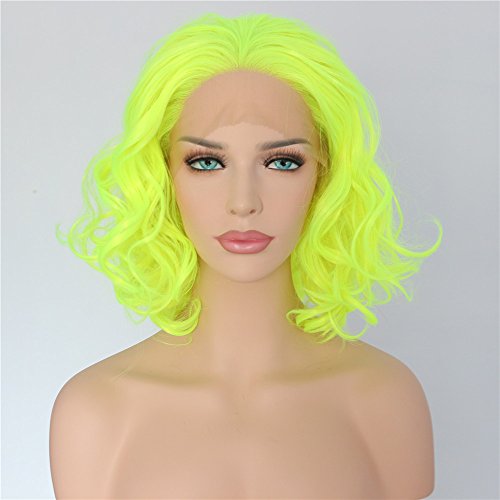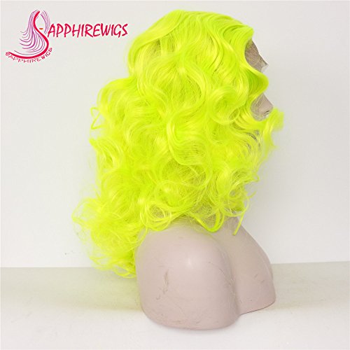 Sapphirewigs Yellow Color Wavy Glueless Synthetic Lace Front Wig Heat Resistant Hand Tied Lace Front Wig For Women