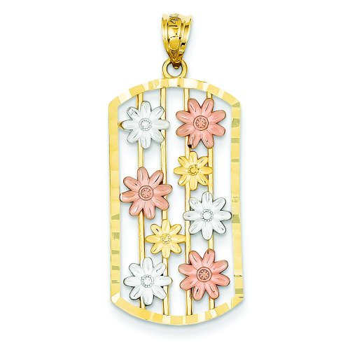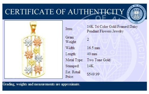 -. Title : 14K Tri Color Gold Framed Daisy Pendant Flowers Jewelry