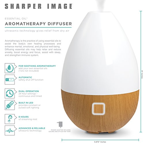 SHARPER IMAGE Deluxe Aromatherapy Essential Oil Diffuser 180ml, Ultrasonic Air Humidifier, LED Light,Auto-Shut off, 8 Hour Continuous Timer,...