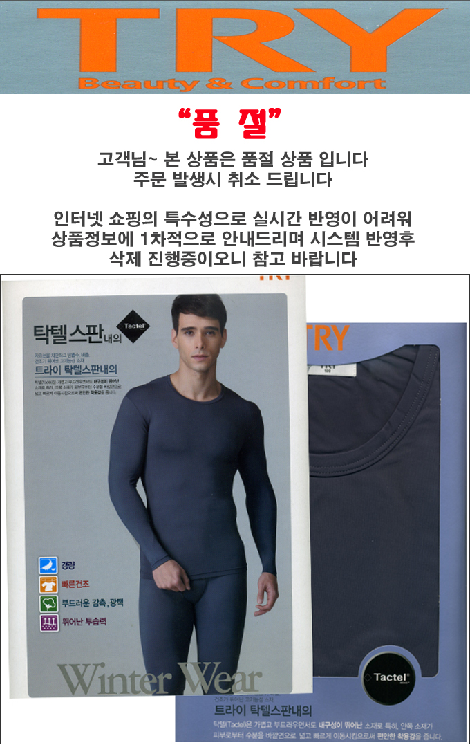 TRY 탁텔스판 내복으로 일반내복에 비하여 보온성이 우수한 상품입니다