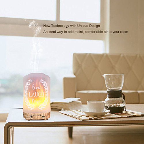 Aromatherapy Essential Oil Diffuser COOSA 100ML Glass Ultrasonic Aroma Diffuser for Essential Oils with Flame Led Lamp Light Cool Mist Humidifier...