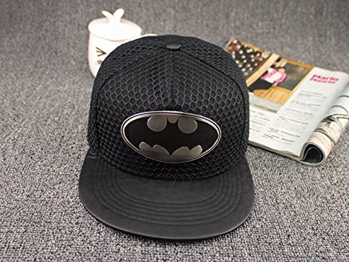-. Binding : Apparel -. Brand : Superhappy -. ClothingSize : One Size -. Department : unisex-adult -. Feature : Imported / Wool/acrylic / Adjustable size fit most / Great Gift Idea / Choose Your Color if Applicable -. PackageQuantity : 1 -. ProductGroup : Apparel -. ProductTypeName : HAT -. Size : One Size -. Title : Superhappy Batman Logo Hip-hop Baseball Cap with Black Mesh on the Cap Surface