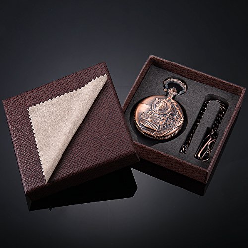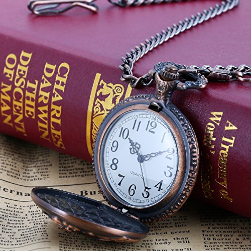 -. Feature : 1. 100% brand new with excellent workmanship, Quartz movement - easy time setting and case release button / 2. Elegant engraved, good touch feeling, A fashion accessory for daily life or party / 3. White dial with black Arabic numerals, Add undeniable style and class to your daily life and fashion with a classic Pocket Watch / 4. Attractive vintage design, It's an eye-catcher at the suit, pants or dress / 5. Come with chain and gift box, Nice gift for birthday, wedding, groomsman gift, anniversary, Halloween, Christmas, Seniority for yourself