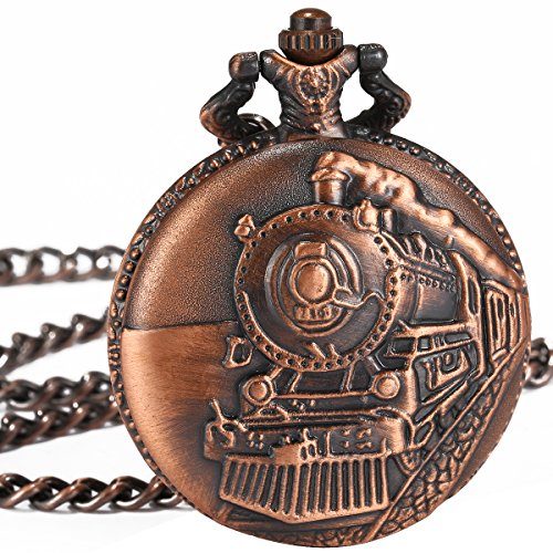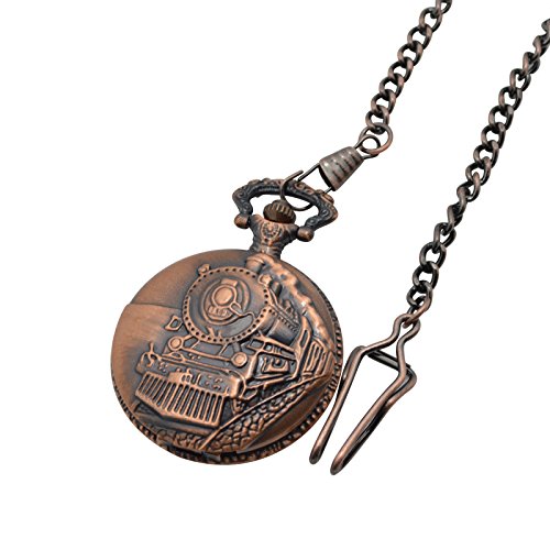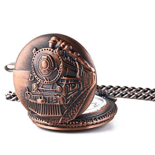 -. Title : WENSHIDA Vintage Cooper Train Embossed Mens Pocket Watch Quartz Full Hunter with Chain + Gift box