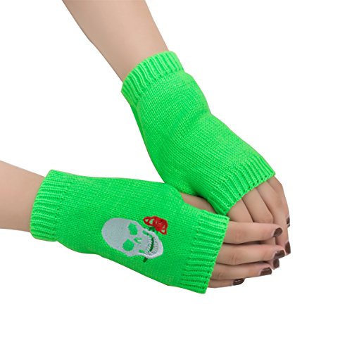 | (Taotopia)/Accessories/Cold Weather Accessories/DIRECT FROM USA/Unisex Knit Fingerless Arm Warmers Skull Jacquard Thumb Hole Gloves Mittens |