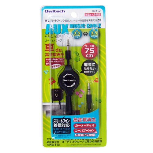 -. Title : オウルテック iPhone6/6Plus等/各種スマートフォン対応 カーナビAUX端子接続用切換式スイッチ付きオーディオケーブル 巻取型75cmブラック OCB-02