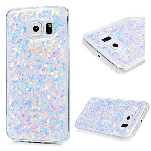 -. Title : YOKIRIN Galaxy S6 Edge Case Bling Glitter Powder Transparent Full Body Protective Shell Soft Flexible TPU Frame Hard Acrylic Back Cover for Samsung Galaxy S6 Edge with Dust Plug & Pen - Sliver