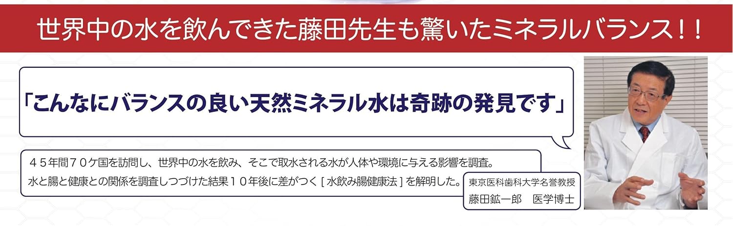 中硬水で、スッキリとした口当たりです。また、カルシウムとマグネシウムは2:1の黄金バランスで吸収率が一番良いです。