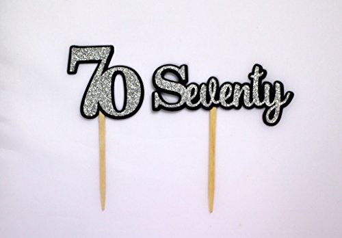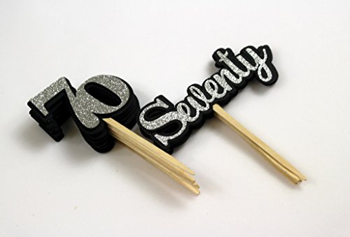 All About Details Black & Silver Seventy Cupcake Toppers, Set of 12