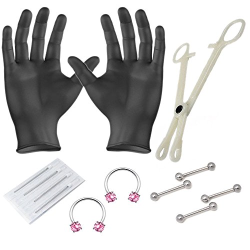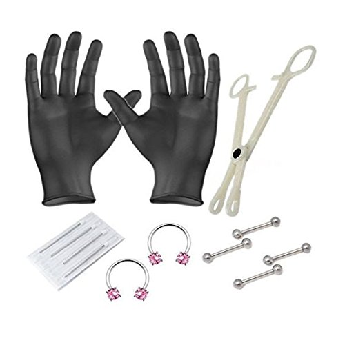 Studio : BodyJewelryOnline Publisher : BodyJewelryOnline Binding : Health and Beauty Product Description 10-PIECE PIERCING KIT Everything needed to achieve professional results is included ? High-Quality Disposable Forceps ? Two 14 gauge, 1/2" Straight Barbells ? Two 16 gauge, 1/2" Straight Barbell ? 4 sterilized and sealed needles ? Pair of black latex gloves - Large Free Extras - Pair of Nipple Clickers Included!! 0