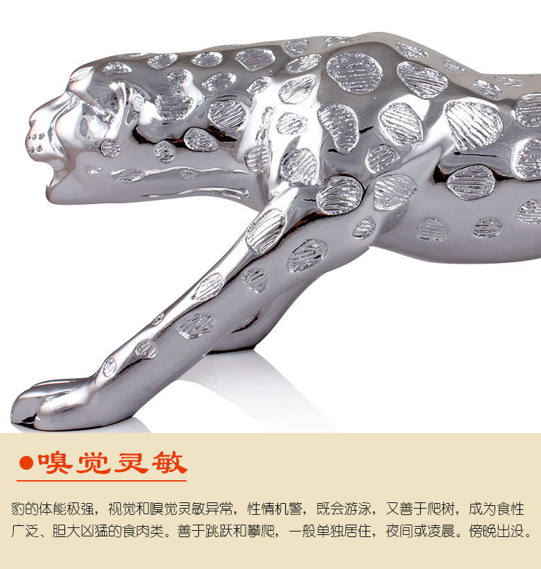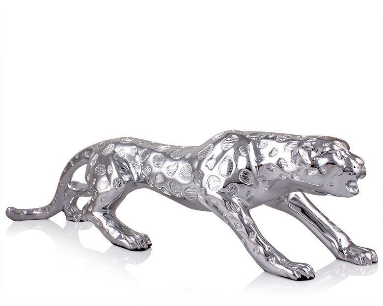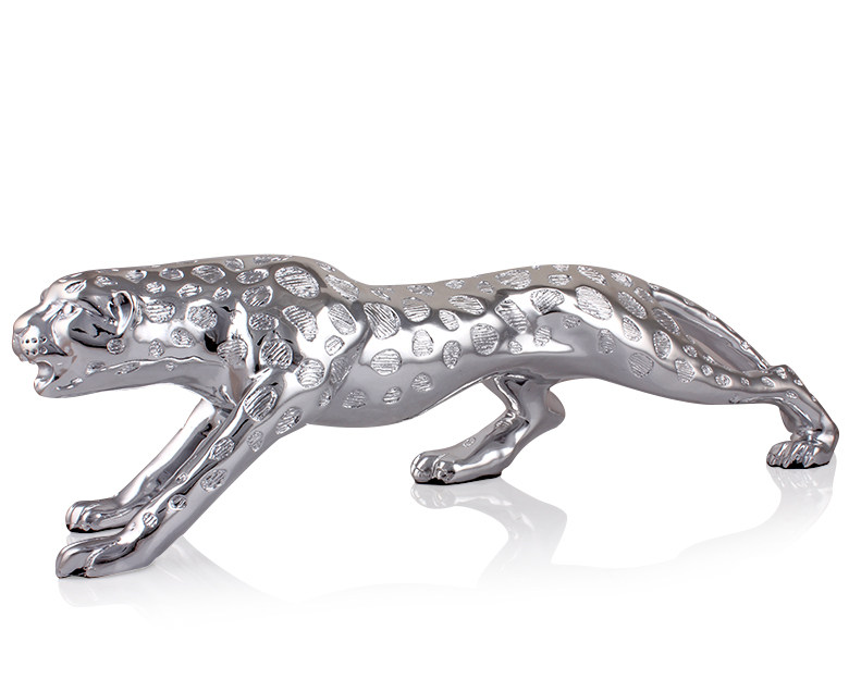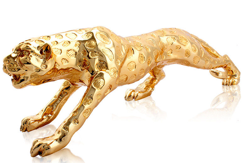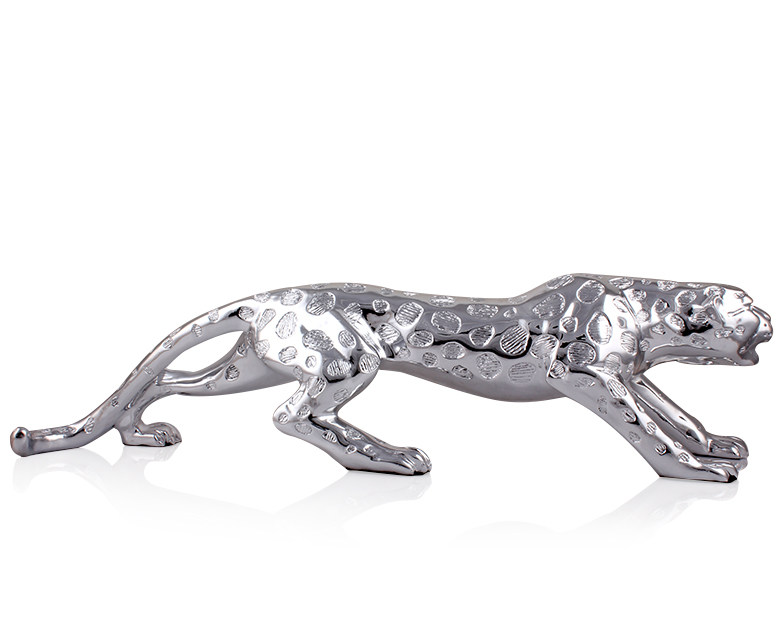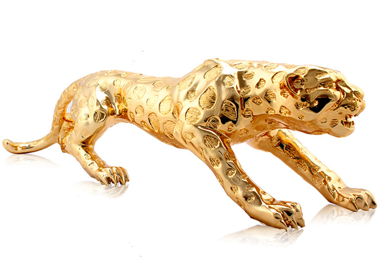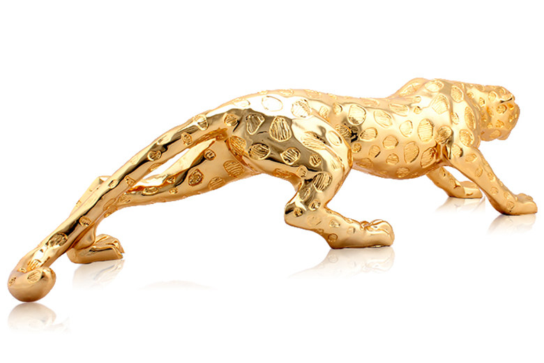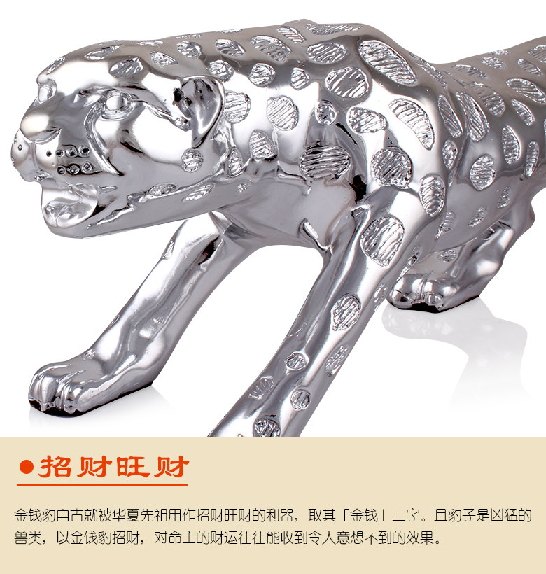 金钱豹形象雄姿英发,面对着猎物,蓄势待发,栩栩如生,雕塑流线型设计运动感极强,有着极强的艺术生命力。 金钱豹发音同“金钱抱”、“金钱到”,有着招财进宝、生意兴隆之寓意.
