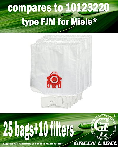 -. Title : 25 bags + 10 Filters for Miele HyClean FJM Dustbags for Compact Vacuum Cleaners (compares to 10123220). Genuine Green Label product.