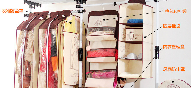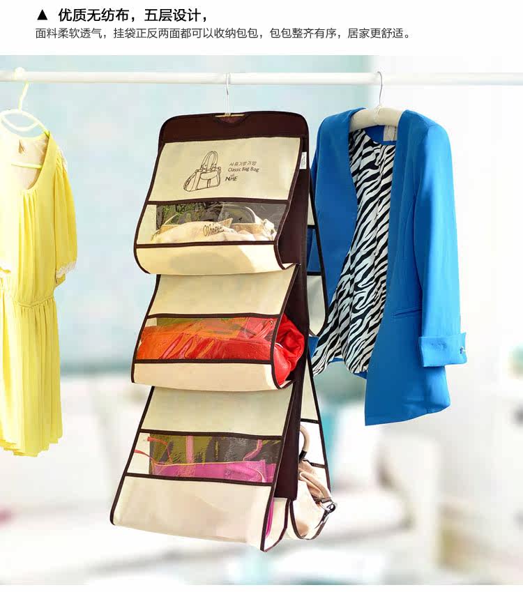 品名:时尚简约可视五层包包收纳挂袋 五格衣橱收纳挂袋
