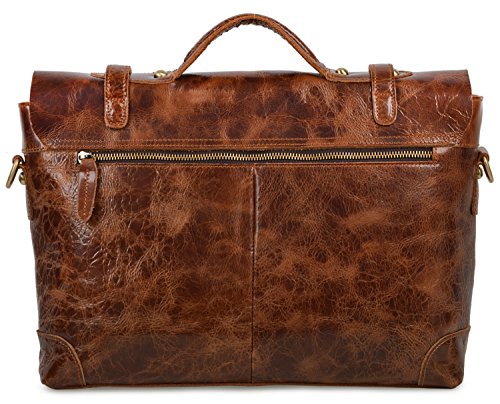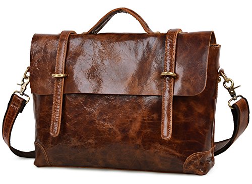 -. Feature : 100% GENUINE LEATHER : Made by high quality Oil Leather; Dimensions: (L)14.5" x (H)10" x (W)4"; Weight: 1.31kg( 2.88lbs); / LARGE CAPACITY: 1 main pocket, 1 back zipper pocket; 2 large zipper pockets and 2 slip pockets inside the main pocket; / DURABLE&PRACTICAL BAG: This leather briefcase can fit A4 magazine, up to 14 inch laptop, textbooks, mobile phone, iPad, wallet, etc; Suitable for casual, work, business, everyday use; / MULTIFUNCTION: This bag can be used as briefcase or messenger bag. A removable 58 inch leather strap inside the bag can be used as shoulder bag or cross body bag; / GOOD CUSTOMER SERVICE: Any problems with your bag, please contact our world-class, friendly customer support team for quick solutions by contacting us through Amazon;