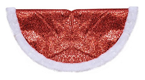 - 20" Red Mini Christmas Tree Skirt 20" Decorative Sparkling Red Glitter with White Faux Fur Border Mini Christmas Tree Skirt