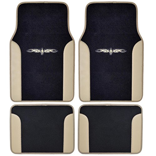 -. Title : A Set of 4 Universal Fit Plush Carpet with Vinyl Trim Floor Mats For Cars / Trucks - Tribal Tan