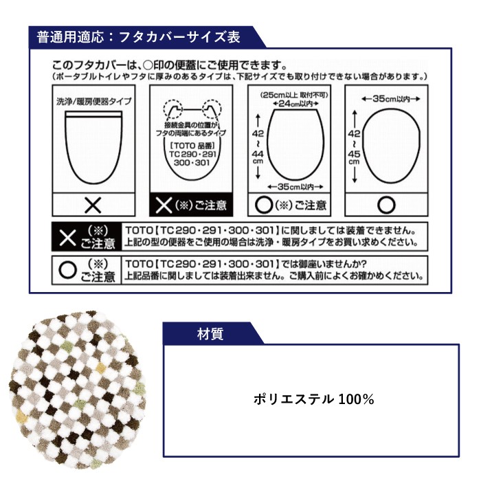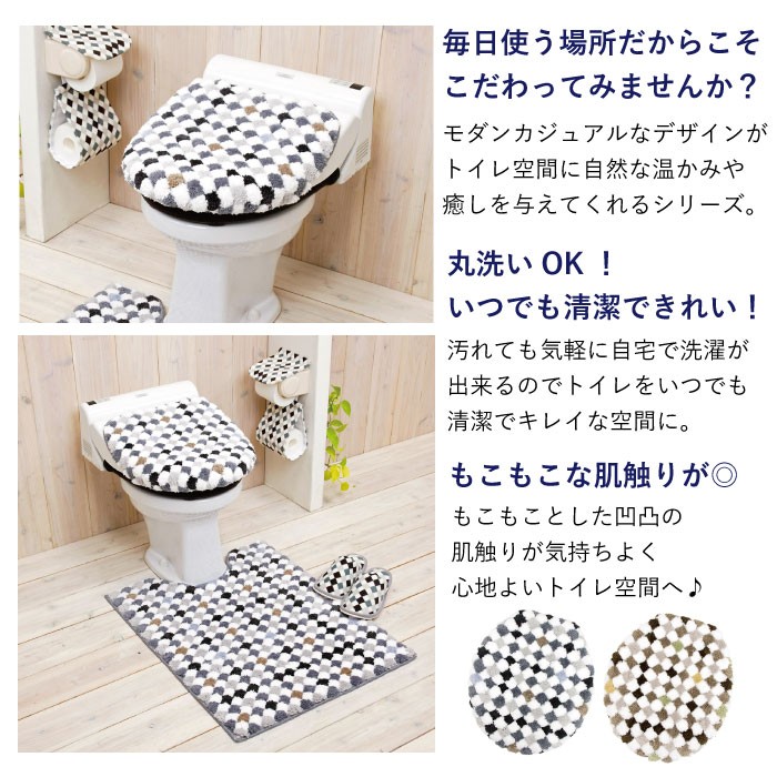 ポコポコとした肌触りが気持ちいいタイル柄のトイレフタカバーです。