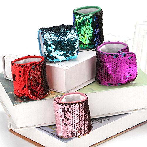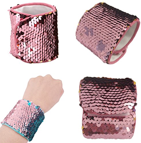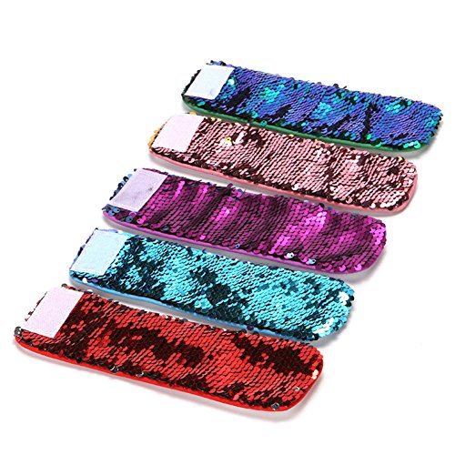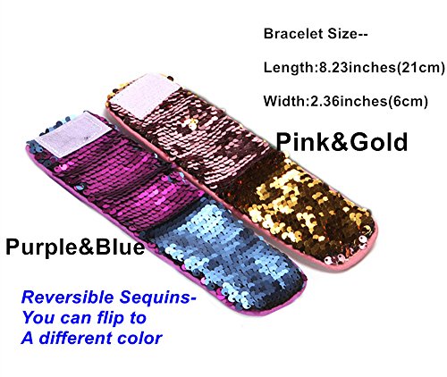 --Material: Reversible Sequins and Super-Soft Velvet Lining --Bracelet size: 8.27 inches(length) X 2.36inches(width) --Fits wrist circumference 6 inches - 8 inches. --Fits age ?4 ? --Adjustable velcro closure; velcro size: 1inch x 1.77inches, keeps the bracelet firmly in place while also giving some size adjust-ability.