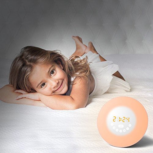 At night, the wake up light offers relaxing dimming, sunset-simulating light that helps guide you toward restful sleep until your bedroom is completely dark.