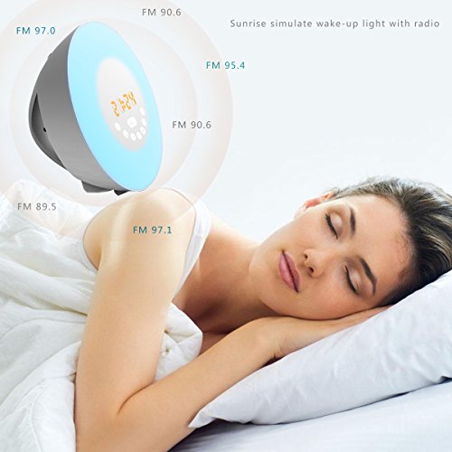 Sunrise And Sunset Simulation Sunrise Alarm Clock fades in a sunrise-simulating light for 30 minutes prior to your designated wake-up time, and then finishes the job with your choice of six natural alarms, or an FM radio station.You can even choose from seven different light colors.