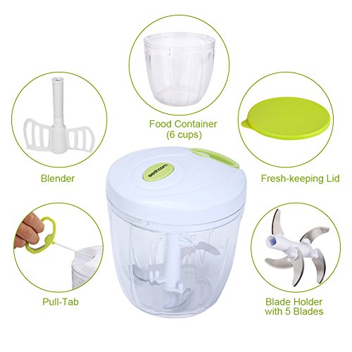 Manual Food Chopper 5 Blades 1000 ml,Sedhoom Powerful Easy Pull Upgraded Hand Held Vegetable Onion Chopper/Food Processor/Blender