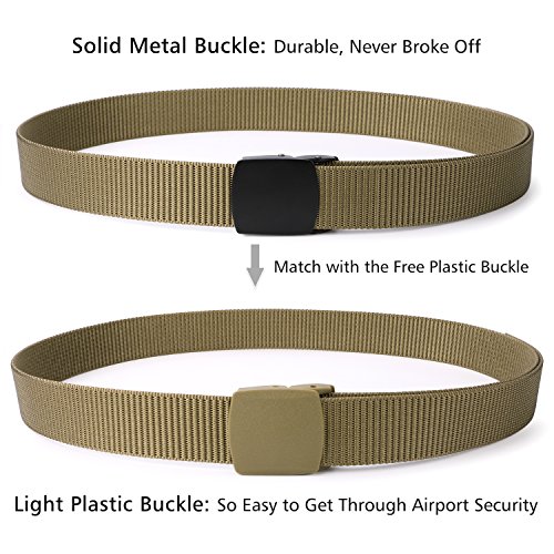 Infinitely Adjustable Size: Belt width 38mm/1.5in; Fit up to 44'' waist (Easy to cut shorter, then melt the edge with a lighter). No holes on belt strap means fully adjustable to your most comfort size.