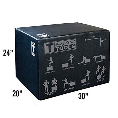 Studio : Body-Solid, Inc. -- DROPSHIP Publisher : Body-Solid, Inc. -- DROPSHIP Binding : Sports Product Description Athletes of all levels use Plyo boxes to boost their vertical jumping ability as well as increase foot speed, cardiovascular endurance, leg strength, health and explosiveness. Body-solid's all-new soft Plyo boxes feature a unique three-sided design. It's like getting three different standard Plyo boxes in one. In addition, the soft sides minimize the potential for Banged shins and scrapes that can sometimes occur with standard Plyo boxes. Three diverse heights (20 , 24 , 30 ) allow you to customize your workout and adjust on the fly. This unmatched versatility removes clutter from your workout space. The durable vinyl cover resists wear and tear while remaining firm even after heavy use. Never worry about footprints or dirt again, as the vinyl covering allows for easy cleanup. Safety is key to the soft Plyo box design as the reinforced soft foam protects you on jumps while remaining firm enough to perform all your favorite plyometric movements. 0