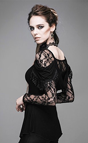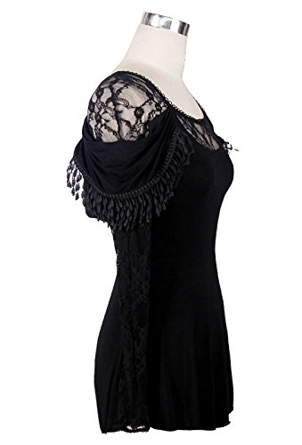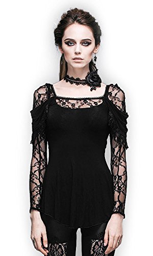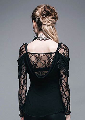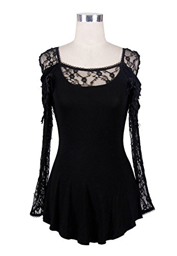 -. Title : 深めのバックカットと黒椿のレースがセクシーなシースルースリーブカットソー ゴシックパンク ブラック レディース Mサイズ TT011M