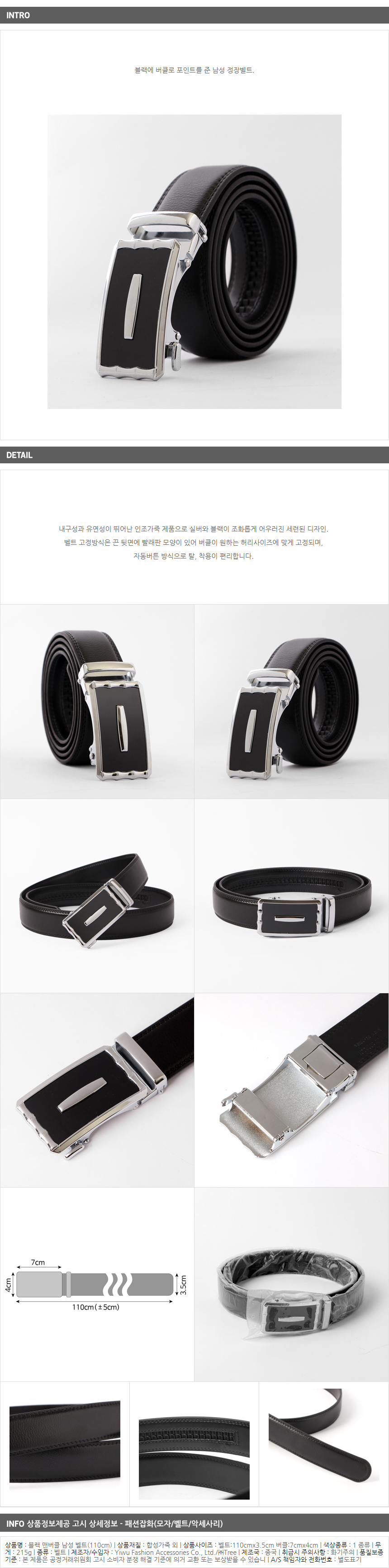 <상품명 : ZP8 블랙 맨버클 남성 벨트(115cm)>
