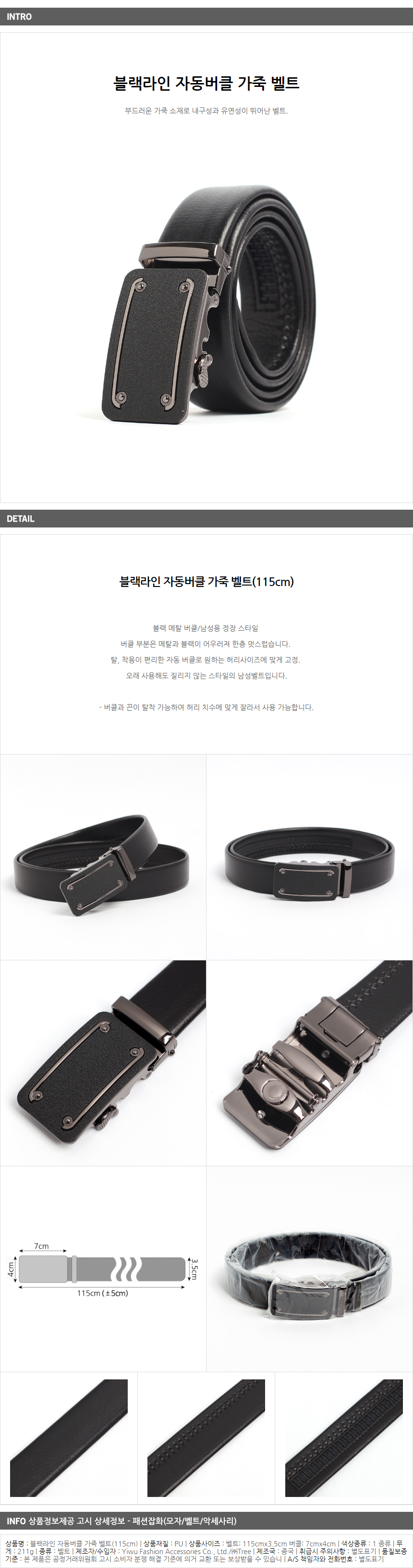 <상품명 : ZP8 블랙라인 자동버클 가죽 벨트(115cm)>