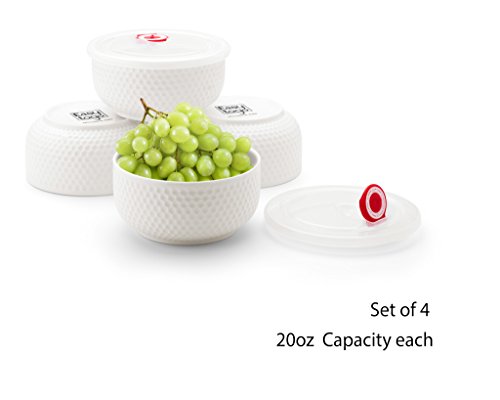 VASTLY SUPERIOR QUALITY TO 99% OF THE OTHER CERAMIC HOUSEWARE OUT THERE: Our bowl set microwave safe is made from super durable ceramic and is totally safe to put in the microwave or dishwasher (the lids even have a special opening for microwaving). Plus they have a cute golf-ball design that looks better than most of the bland ceramic mixing bowl sets out there!