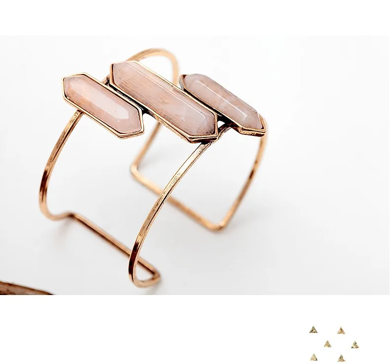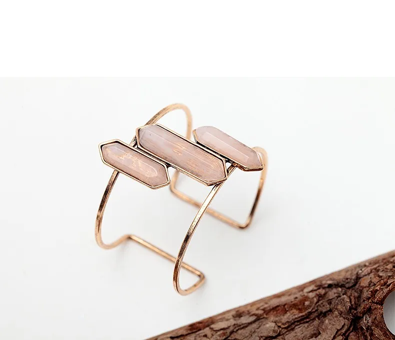 Bohemian Style Wide Open Cuff Bangles For Women Vintage Antique Gold Pink Blue Green Resin Bullet Shape Setting Charm Bangles