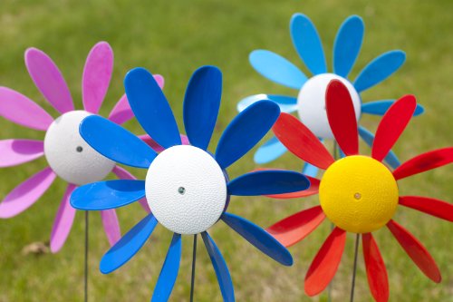 Studio : Beloit Plastics, LLC Publisher : Beloit Plastics, LLC Product Description Classic Spinning Daisy is a time proven yard and garden decoration that lasts for years. The Spinning Daisy transmits a vibration to the ground that irritates and drives away moles and other underground pests. Approximately 12" in diameter 24" tall. This listing is for 1 case of 6 "Classic Spinning Daisy"'s in random, vibrant colors. We do not offer customer requested colors. Everybody loves pinwheels for parties, bridal and baby showers, great gifts, holidays, gardens, flower pots, and for checking wind direction. VINTAGE YARD FLOWERS, RETRO SPINNERS, Now shipping with our new all metal stem and axle. In high wind areas you may need to bend the wire a little to keep the daisy on the axle. 0