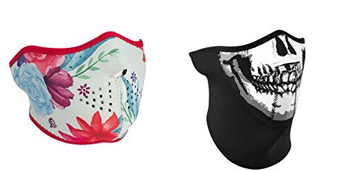 -. Title : Bundle (2 Items): 1 ZanHeadgear 'Watercolor Flowers' Half Face Neoprene Face Mask -AND- 1 Zan, 3-Panel, 'Black & White Skull' Half Face Neoprene Face Mask, Ski Mask