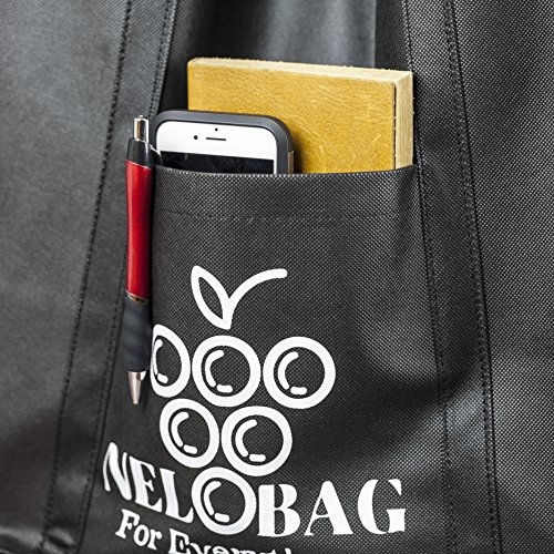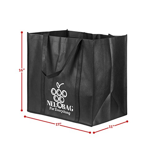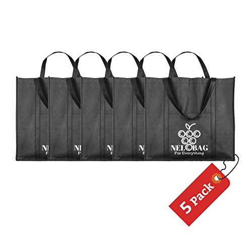 Extra Large Reusable Grocery Bags Set Of 5 By NELOBAG - Heavy Duty Collapsible Folding Shopping table Hand Tote Bags For Men & Women Comfortable Handles Large Capacity Portable Shopper Bags Black
