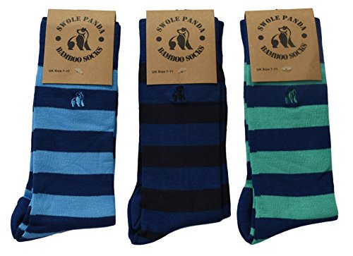 -. Binding : Apparel -. Brand : Swole Panda -. Department : mens -. Feature : 3 pairs of soft and smooth bamboo socks in classic and fun colors / Bamboo fibers have natural antibacterial and anti fungal properties / Made of sustainable, biodegradable and energy efficient materials / Fabric is gentle on sensitive skin and naturally controls temperature and moisture / Socks have ribbed cuffs, reinforced heel and toe, and smooth hand-linked seams -. Model : SP093/SP091/SP089 -. PackageQuantity : 3 -. ProductGroup : Apparel -. ProductTypeName : SOCKSHOSIERY -. Size : UK Size 7-11; = Women's shoes 10-12.5/Men's 8-12. -. Title : Swole Panda - Soft Striped Bamboo Socks, Size 8-12 (Pack of 3 Pairs)