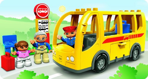 -. Feature : Opening function on both sides and in the bus / Bus seats 4 figures in total / Includes bus stop, 2 suitcases / Three Duplo figures (bus driver, granddad and child) / Contains 14 pieces