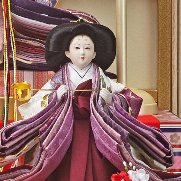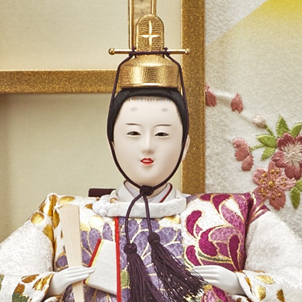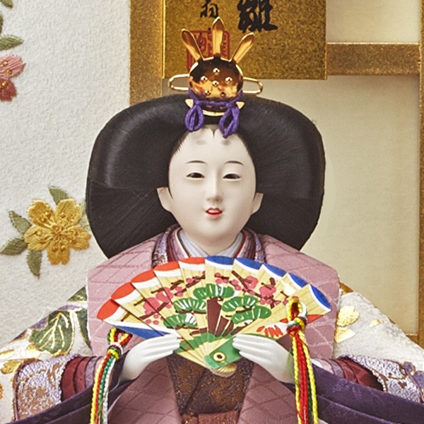 ・台座・屏風等には落ち着いた色目の雛人形セット。