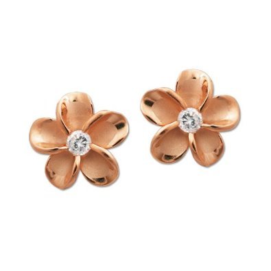 -. Title : ハワイアンジュエリー:CZ付プルメリア(花)14Kピンクゴールドプレート仕上げピアス