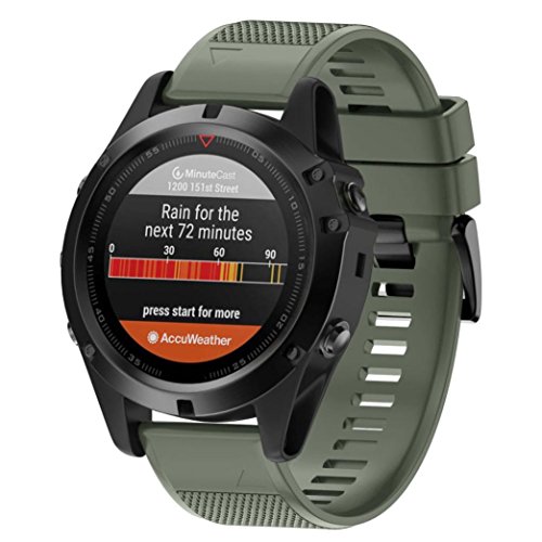 ?Features: 100% Brand new and High quality. Personalize your wristband to match your daily style with this band cover new color choices. Concise and vogue style add color to your image. Compatible For Garmin Fenix 5X GPS Watch Band Wide: 26MM Band length: 220MM ?Color:Blue,Green,Gary,Army Green ?Package Content: 1x Replacement Wrist Band 0 |