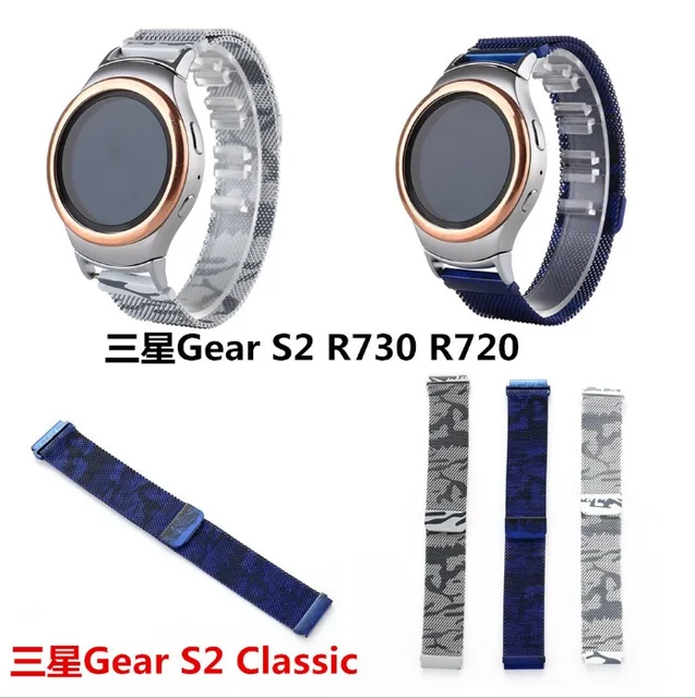 | [해외]CARLYWET 20 22 미리메터 카모 실버 블루 메쉬 Milanese 루프 팔찌 교체 시계 밴드 자기 삼성 기어 S2 정상 시계 |